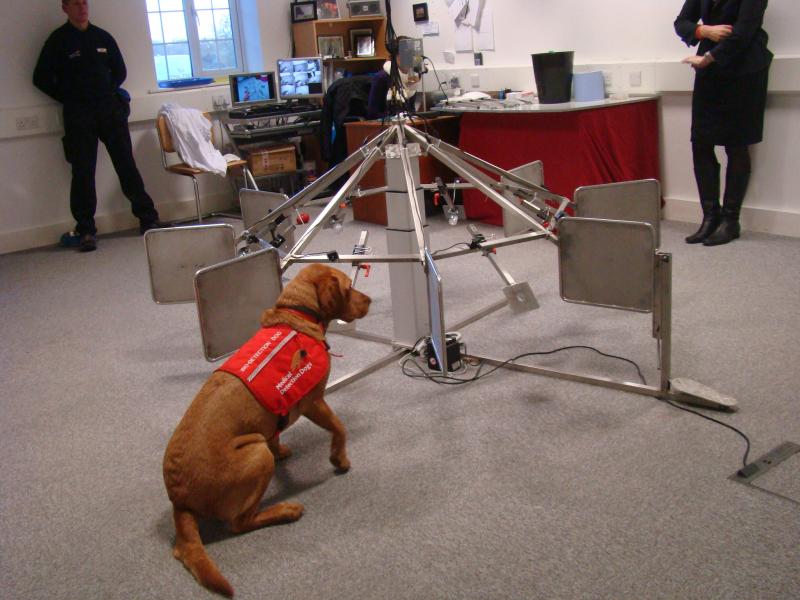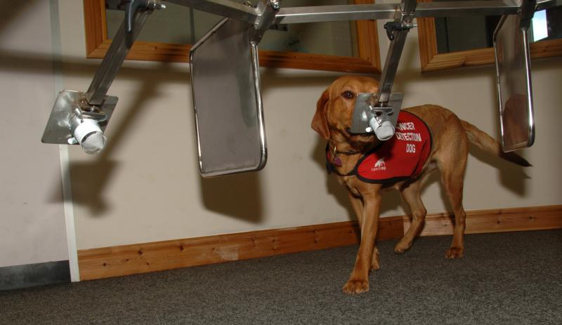 Es wedelt nicht nur der Schwanz, sondern fast der ganze Hund: Daisy kann es kaum erwarten, zur Arbeit zu gehen. Der honigbraune Labrador trägt eine rote Schabracke mit der Aufschrift «Bio Detection Dog», also Bio-Spürhund. Und das ist auch Daisys Aufgabe, denn sie ist ausgebildeter Krebsschnüffelhund. Mit ihrer Halterin, der Claire Guest betritt sie den Testraum, in dem ein futuristisches Karussell aus Chromstahl aufgebaut ist. Rings um das Karussell sind mit Klammern acht Plastikdöschen befestigt, in jedem ein bisschen Fliesspapier, das mit einigen Tropfen Urin getränkt ist. Dieser stammt von Patienten mit verschiedenen Erkrankungen von Niere oder Blase, aber nur eine einzige Urinprobe von einem Patienten mit Nierenkrebs ist darunter. Claire schickt Daisy los, sie geht zügig um das Karussell herum, schnuppert fast nachlässig an den Döschen und setzt sich dann kurzentschlossen vor eines hin. Es ist die Urinprobe des Nierenkrebspatienten. Claire betätigt den Clicker, einen kleinen Knallfrosch, und für Daisy heisst das «Gut gemacht!». Die Hündin geht zu ihrer Halterin zurück, setzt sich erwartungsvoll hin und bekommt einen Hundekeks zur Belohnung.
