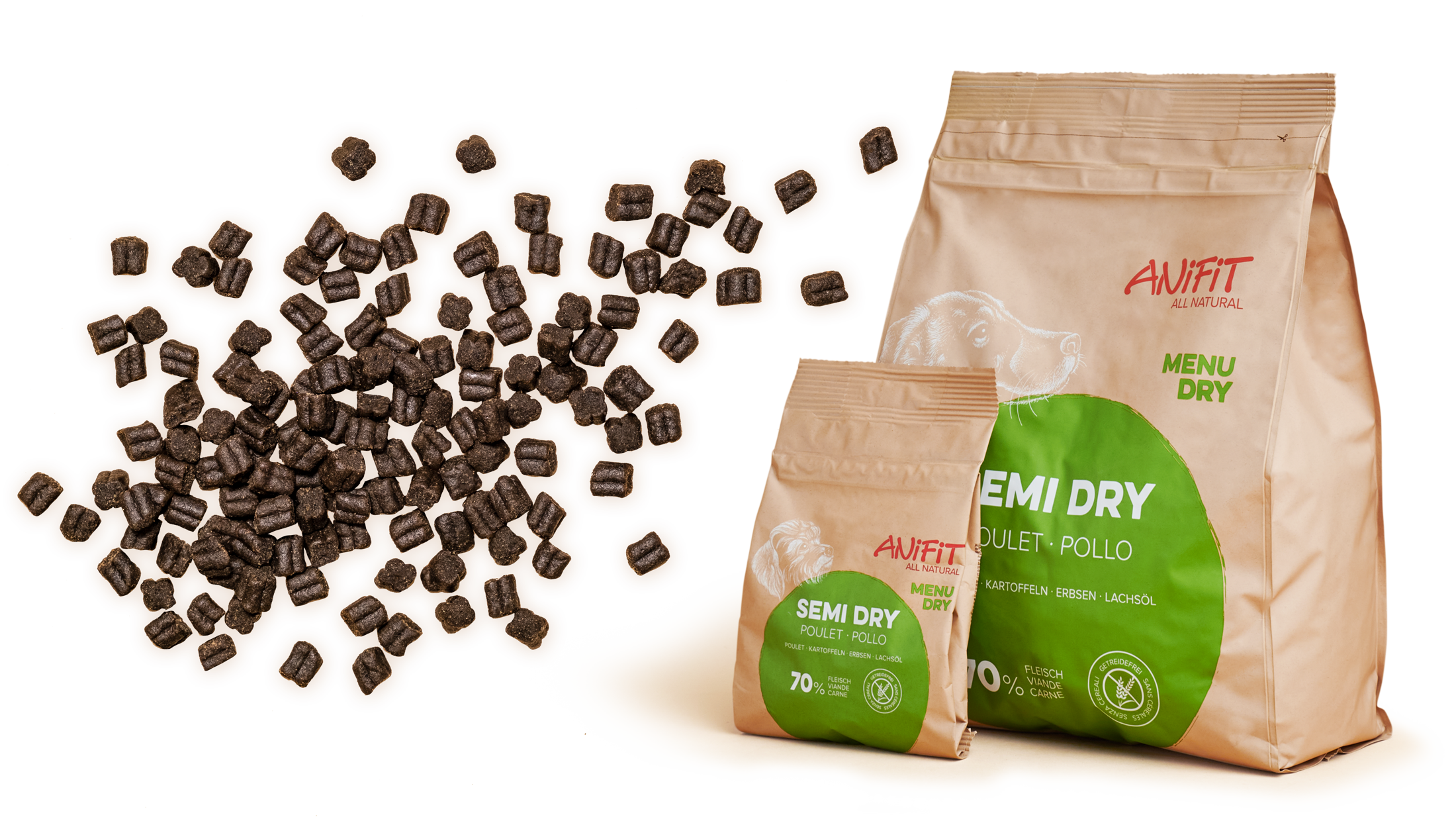 Pour les chiens souffrant d'allergies ou d'intolérances, une alimentation sans céréales peut être un bon choix. De nombreux propriétaires renoncent également délibérément aux céréales dans le cadre de l'alimentation BARF. ANiFiT propose un large choix d'aliments humides et secs sans céréales de qualité.